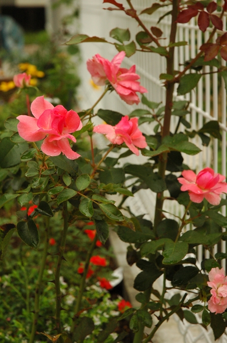 ジャルダン・ドゥ・フランスが咲いた。サーモンピンクの中輪、香りあり。