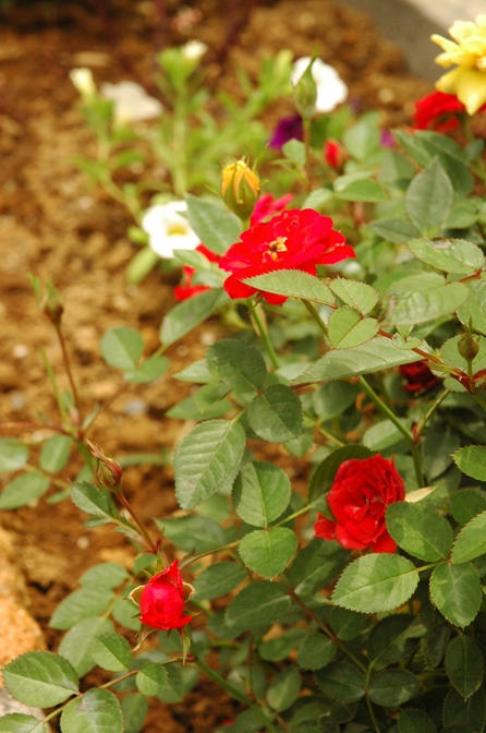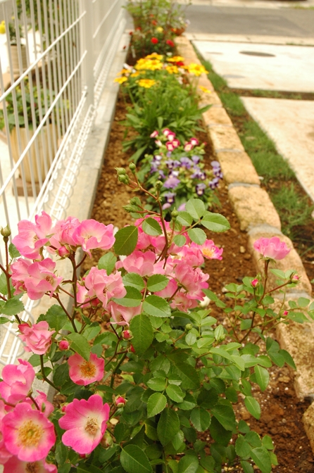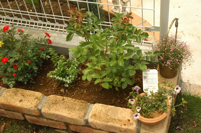 もらったバラ苗は先頭(写真奥側)に配置してしまい、後で後悔。