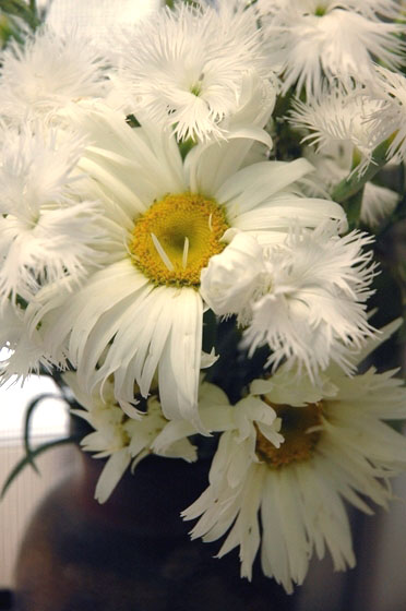 シャスターデージーは摘心しなかったので最初に咲いたのがどれも