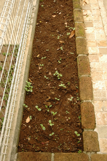 芽が出た場所は避けて、残りの花壇の土をさらってふるいにかけて