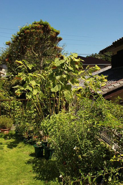 右 ひまわりは首を垂れたままこんな感じで立っている。