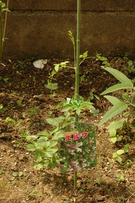 2年苗で買ったばかりのカシス、花つきがよく蕾がたくさん。