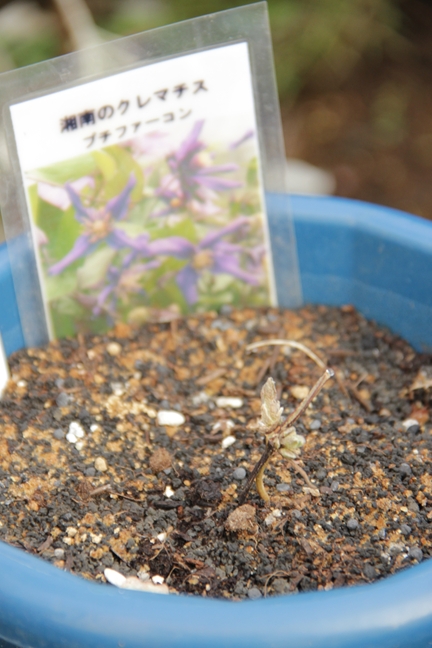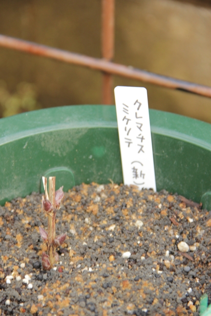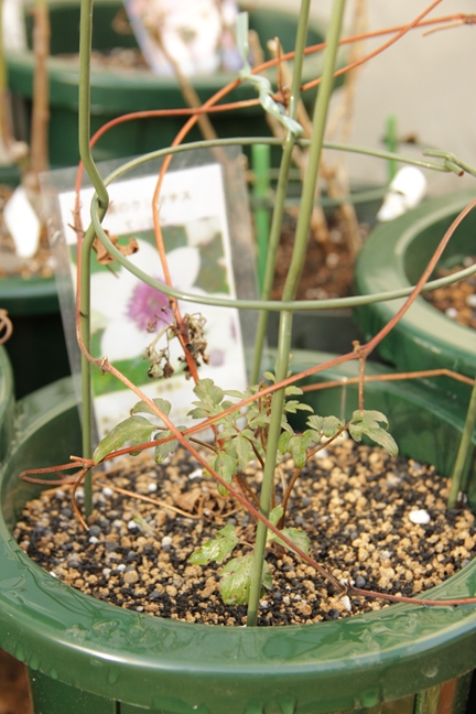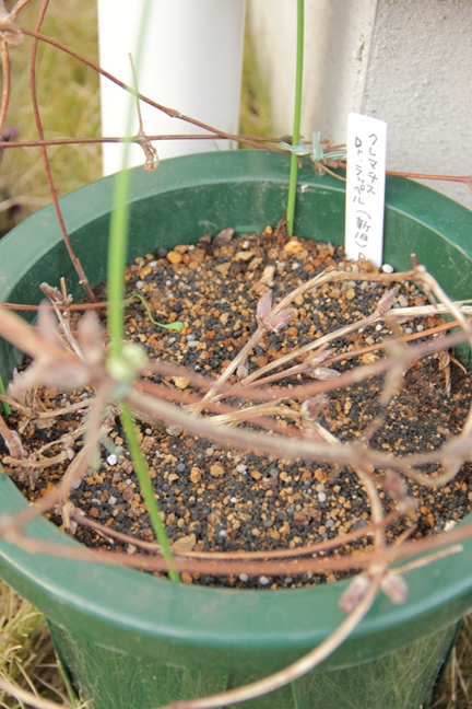 風が強くて庭作業にならないのでクレマチスの芽吹き状態でも…
