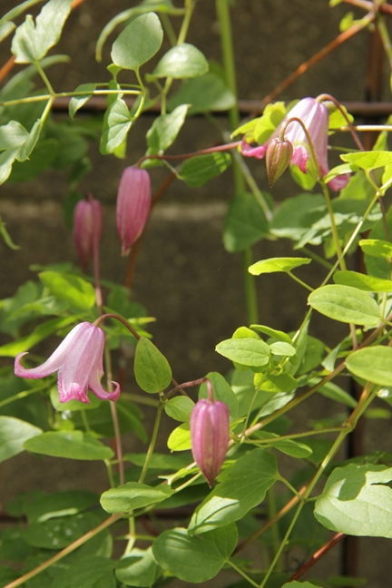 蔓が旺盛に伸びるのでこのトレリスでは足りず、てっぺんが宙に浮いている…。