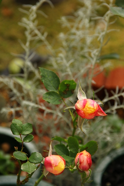 よく見えないけど植えてある四角いテラコッタ鉢は、今クリロー入れてる鉢。