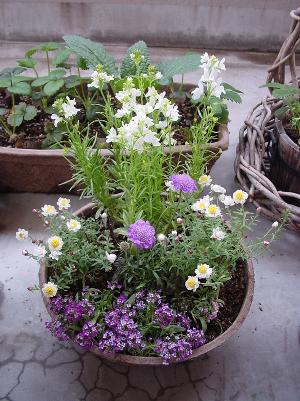 寄せ植えも同じ年の写真で、この鉢がビオラを植えたら