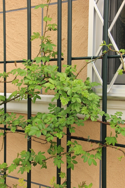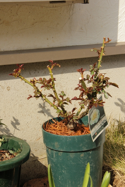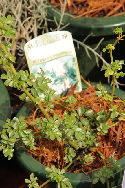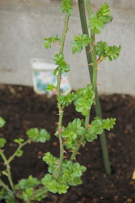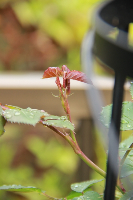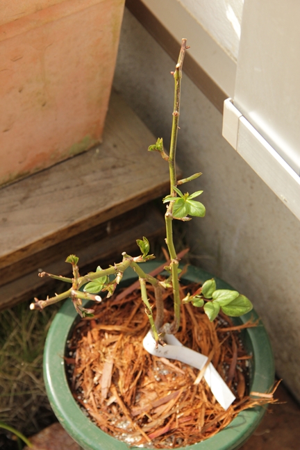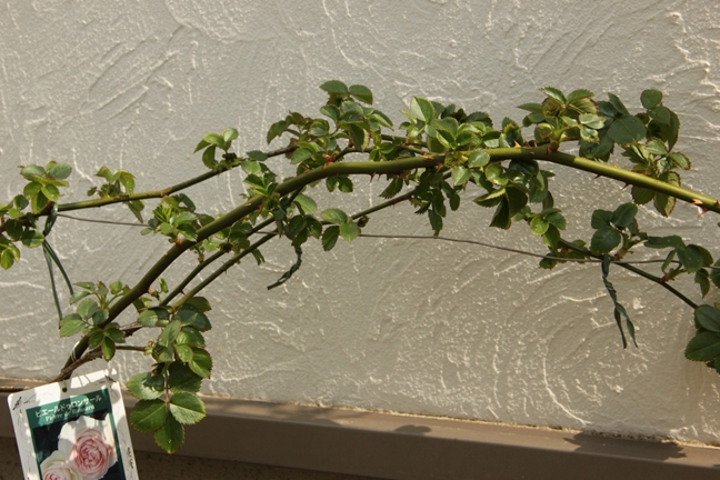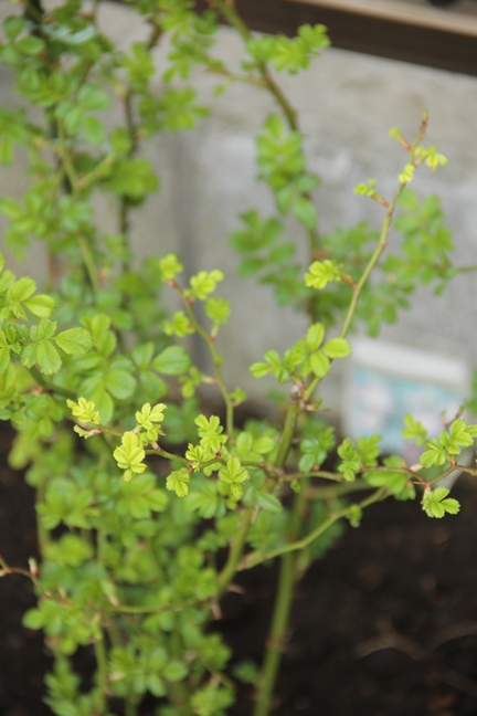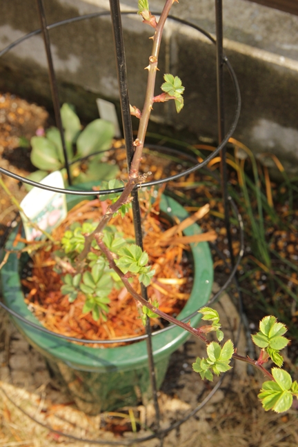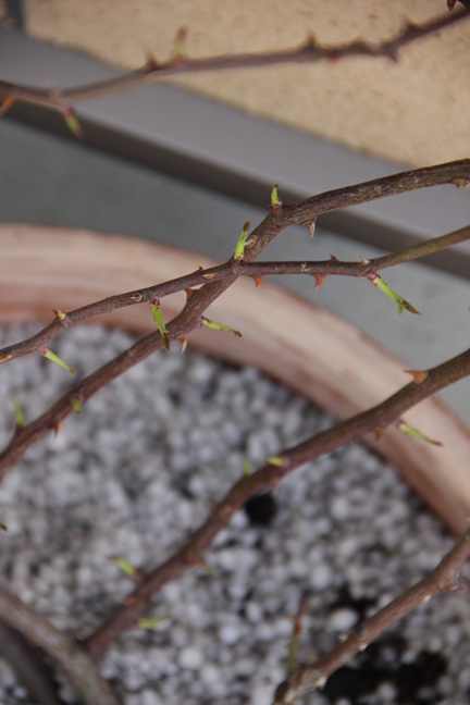 遅れて芽吹いたバフビューティの鉢はいつ北に移動しよう…
