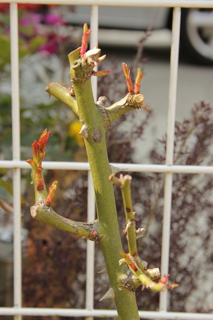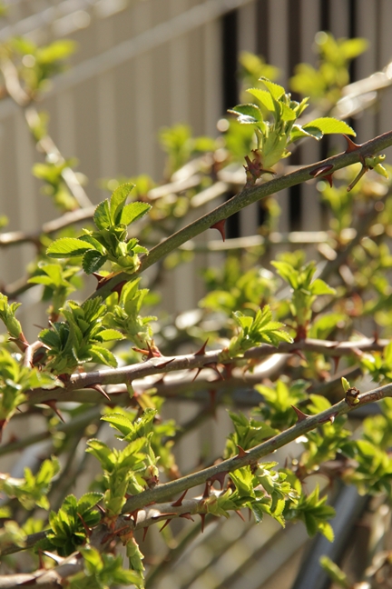 ここ数日撮り溜めたバラの芽吹き写真を並べておこう…