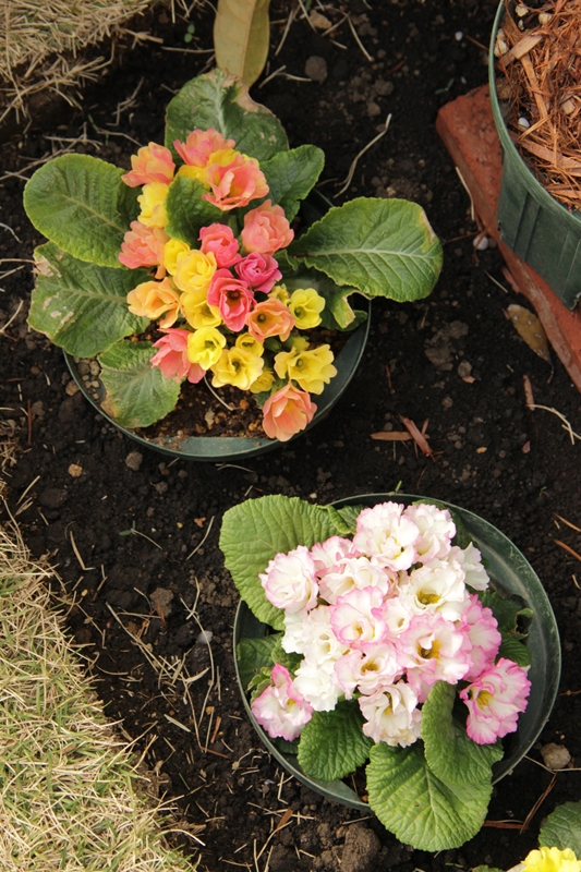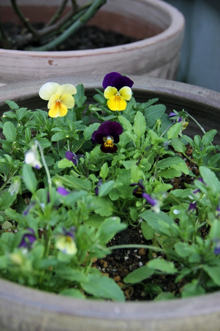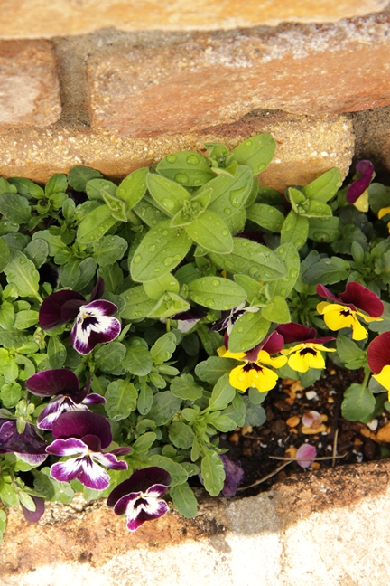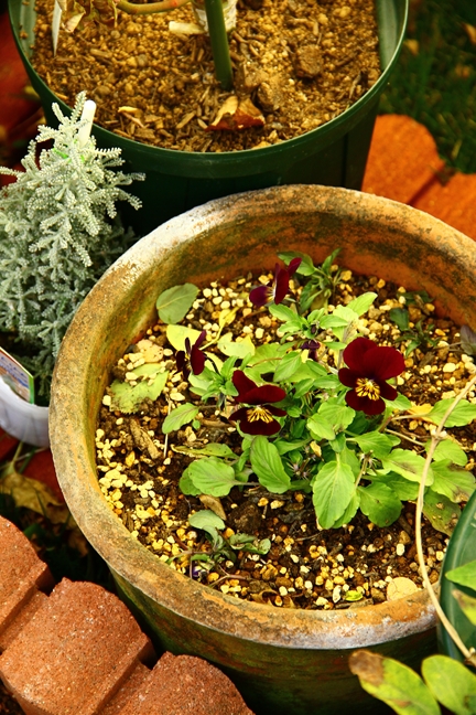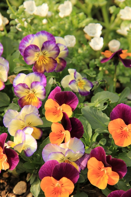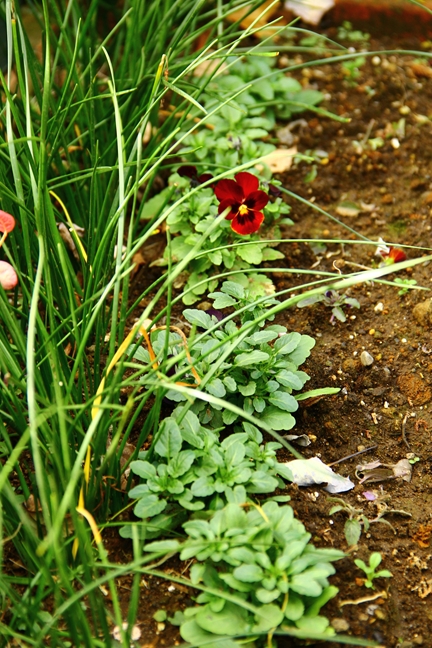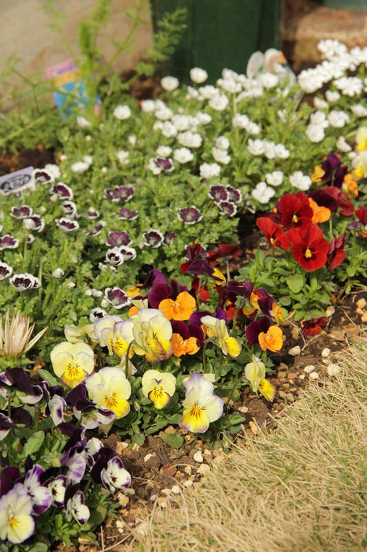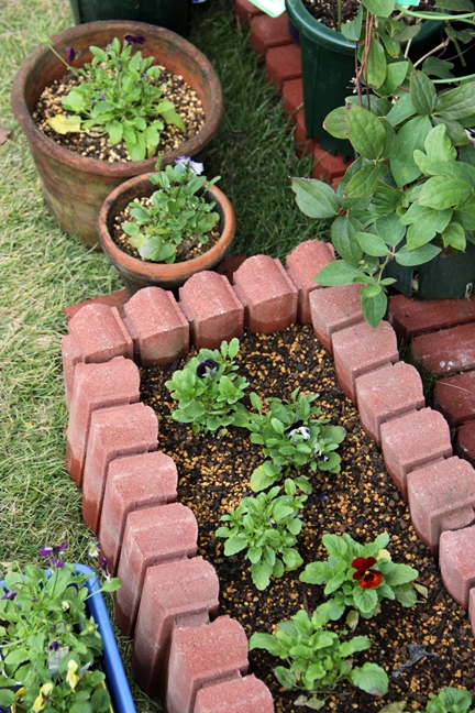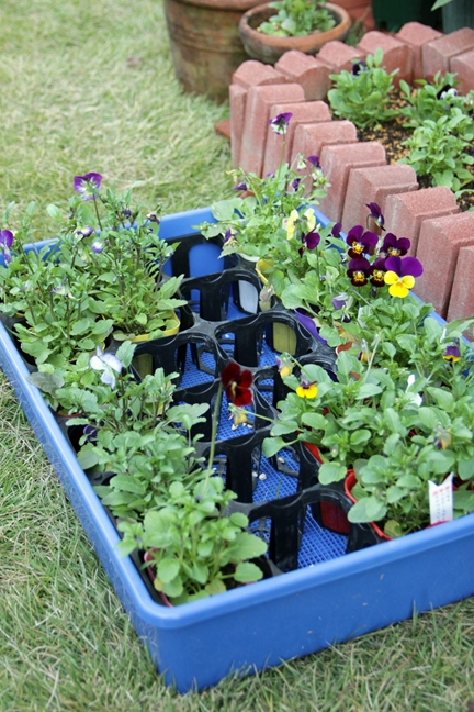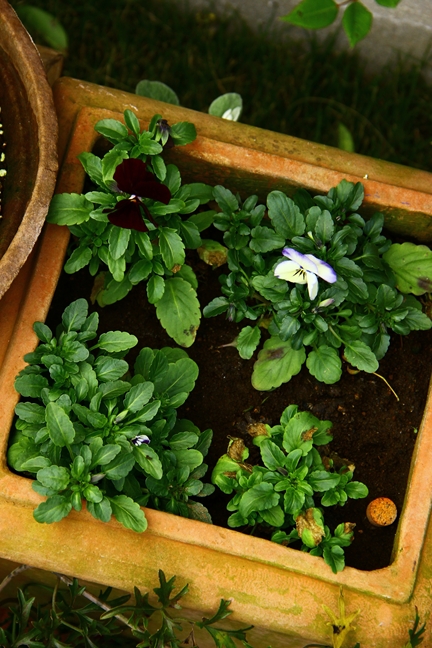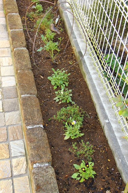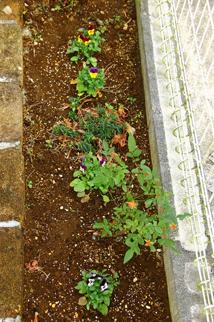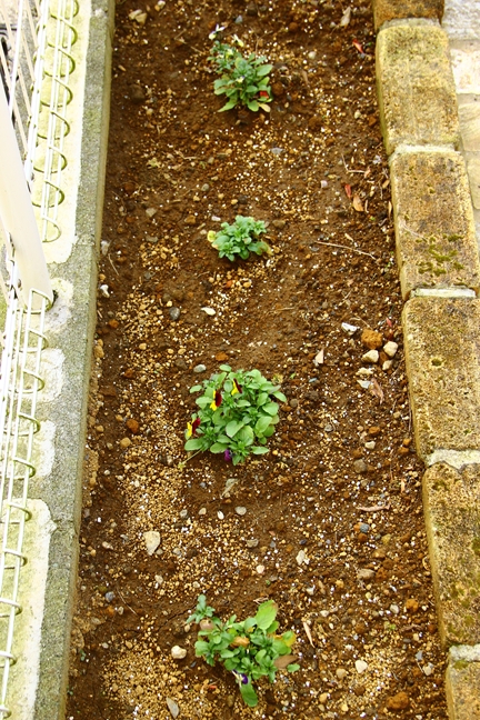 やっつけ花壇は好調。パンジービオラ用の土を入れただけある…