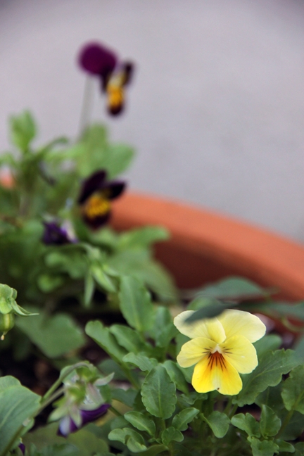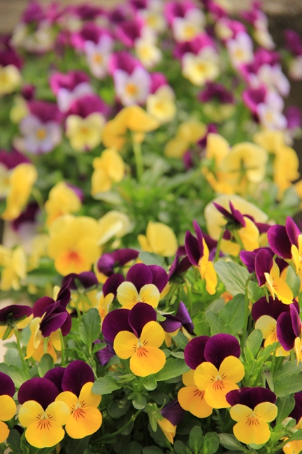 ビオラは植えたときの条件で生育状態がけっこうバラバラ。