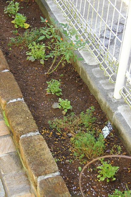 細長い花壇なので足りなくなって、庭の花壇のほうに植えてたやつを