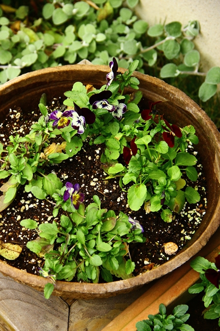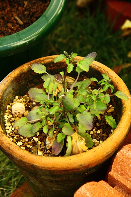 この素焼き鉢は小さすぎるのか、何植えても枯れる。