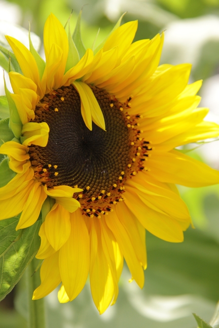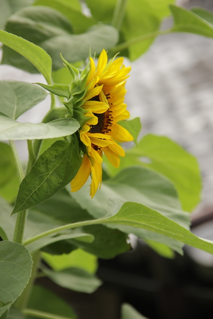 ひまわりの下で生長が止まっていたこぼれ種朝顔が、植え替えてもやっぱり
