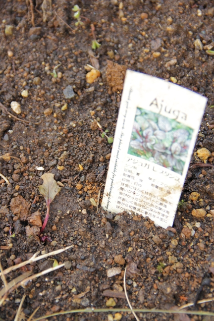 溶けて消えたと思ってたアジュガに欠片が残っているような?