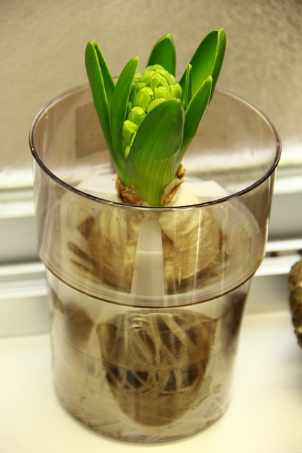 ヒヤシンスも水耕栽培タイプで白花があったのでお持ち帰り。