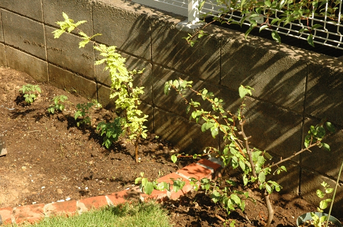 植えてみることにして、できるだけ丈夫と言われているものをとりあえずの配置で植えてみた。
