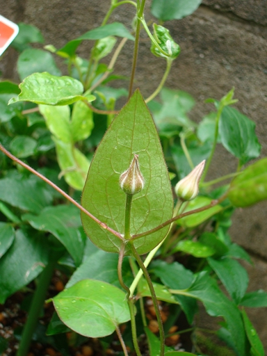 篭口は蕾を葉っぱが両手でそっと包んだような形でかわいらしい(左)