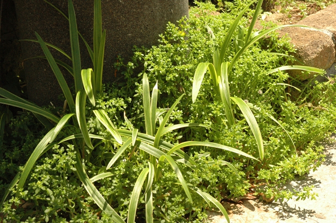 勝手に生えてきた雑草が丸い葉でかわいらしくてバランスよく、いい感じ。