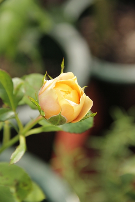 クリスパに蕾、まわりの葉っぱがないのは虫に食われたから;
