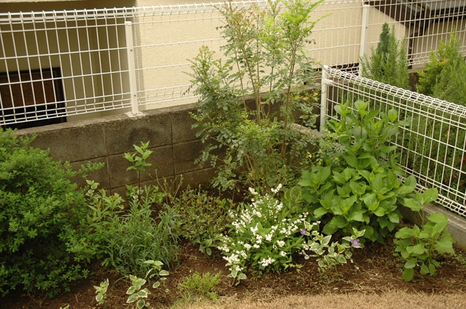 日陰向きの植物をいろいろと植えた。