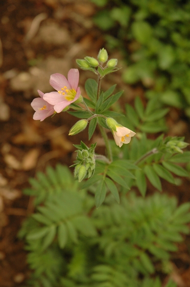 右のピンクのはハナシノブ”アプリコット・デライト”。