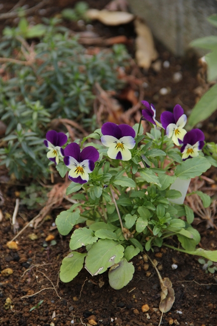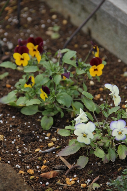 写真は12月の北側花壇のビオラ。