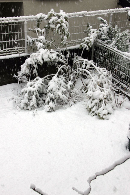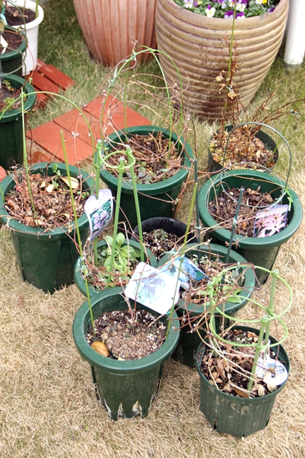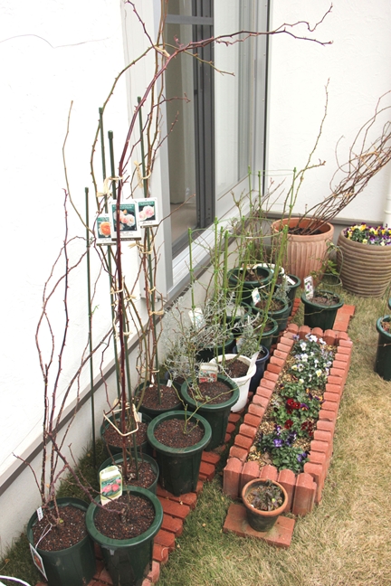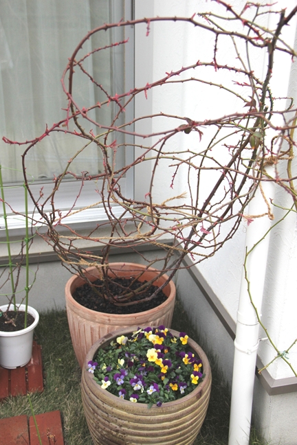 まわりの鉢は寒肥作業を終えたバラたち。すっきり。
