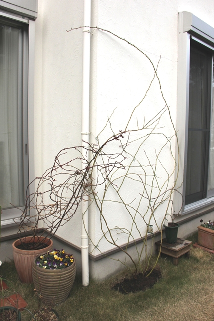 あったかくてやる気になったので、まずはつるバラの誘引から。