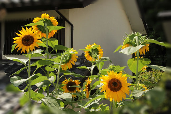 今、表玄関でうちの顔になっている2m超えひまわりが種っぽくなってきて