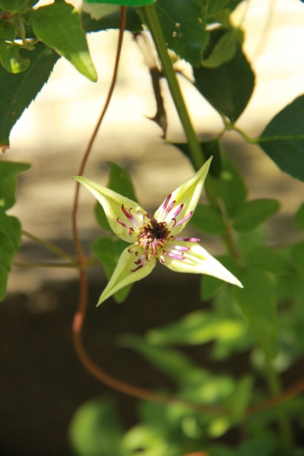 篭口の蕾は黒い。咲いたら深い紫になるはず。