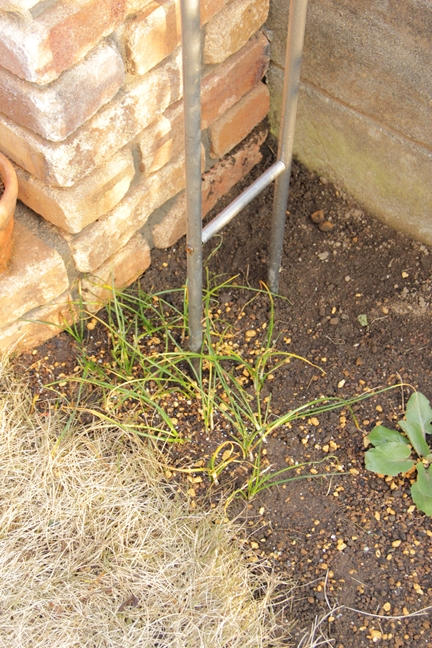 芝生との境目にあって、伸びた芝生が下にもぐりこんでいるせいか