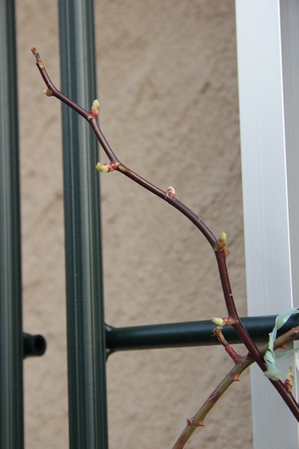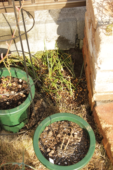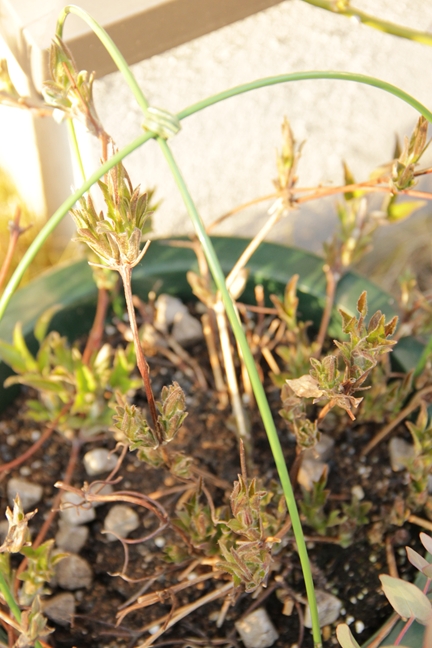 北側に移した鉢のほうも、寒さで枝先が枯れこみながらも