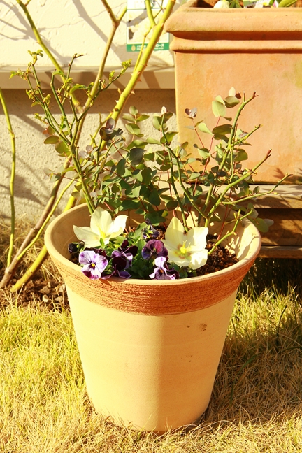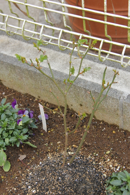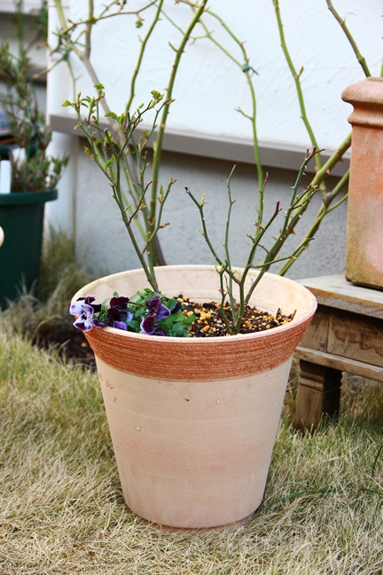 抜いたミニバラはふたついっしょにビオラといっしょに植えてみたけど…