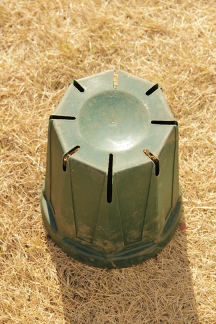 スリットがあるので普通に植えこむと穴から根が出てしまうけど、