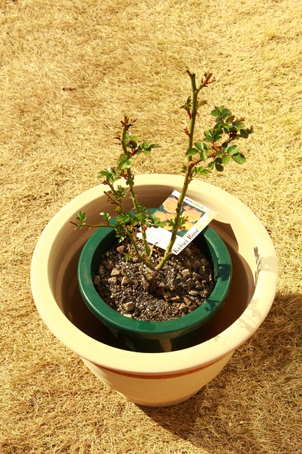 つるバラのそばに鉢を置いてみっともなくなるのをごまかせる。