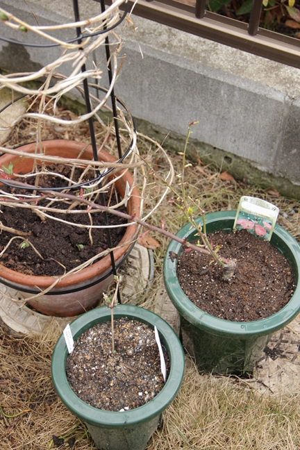 鉢ふたつはクレマチスの植え替え。右は新しくやって来たアラベラ。