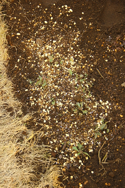 立ち上げ花壇にもたっぷり撒いた。