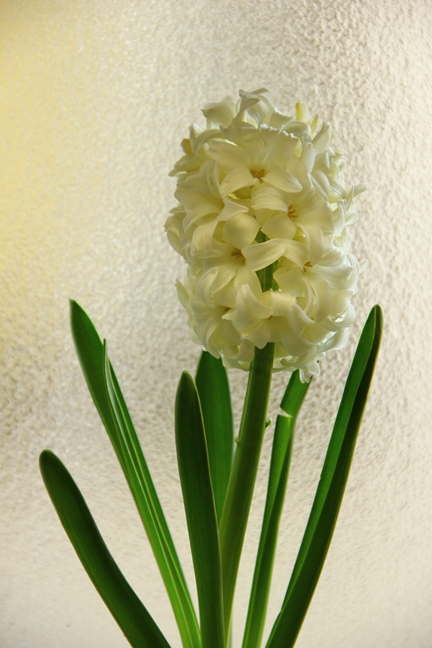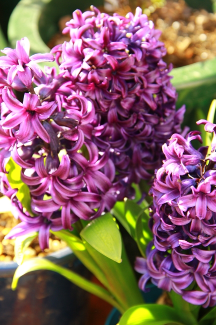 室内のヒヤシンスはここ数日の間にぐーっと首が伸びて(左は2月末の姿)