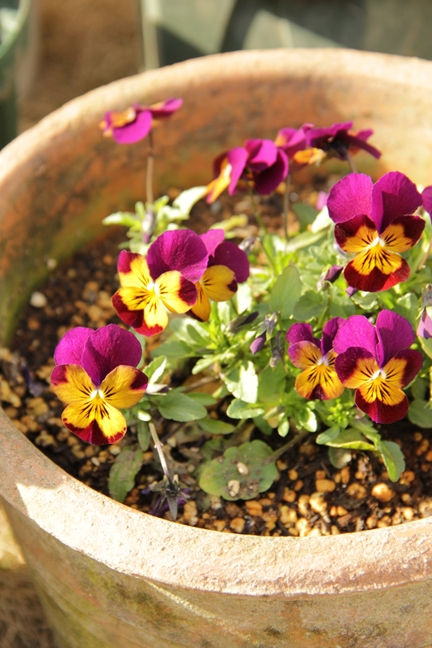 日差しがたっぷり当たるようになったおかげで、ビオラはみんなちょっと
