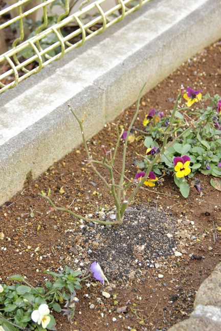 抜いたミニバラはふたついっしょにビオラといっしょに植えてみたけど…