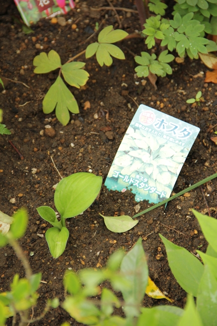 50円ホスタのゴールドスタンダードもちゃんと生えてくれてうれしい。