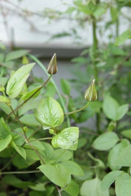 こちらはもう少し育った状態の正体不明さんの蕾(左)