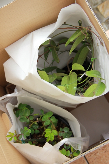 届いたアッシュウェンズディ(後に品種違いと判明)とアーマンディアップルブロッサム