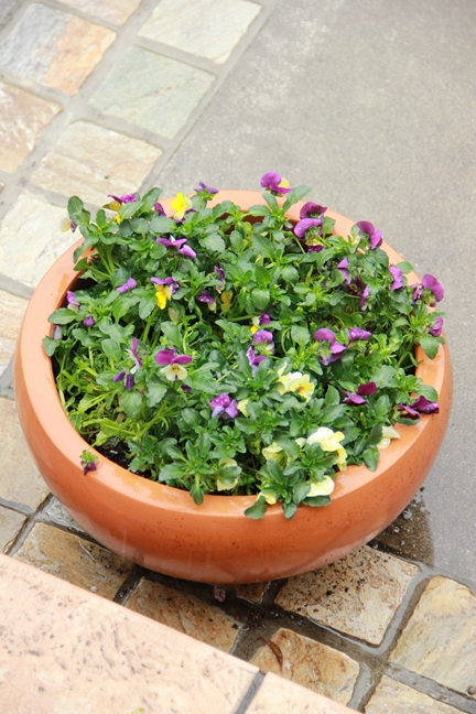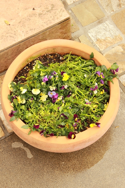昨日、玄関に置いた日陰ビオラがくたーっとなってて