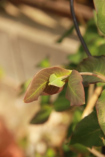 ビニタイを全部ほどいてだらーんと自由にさせてみた。(庭側に)