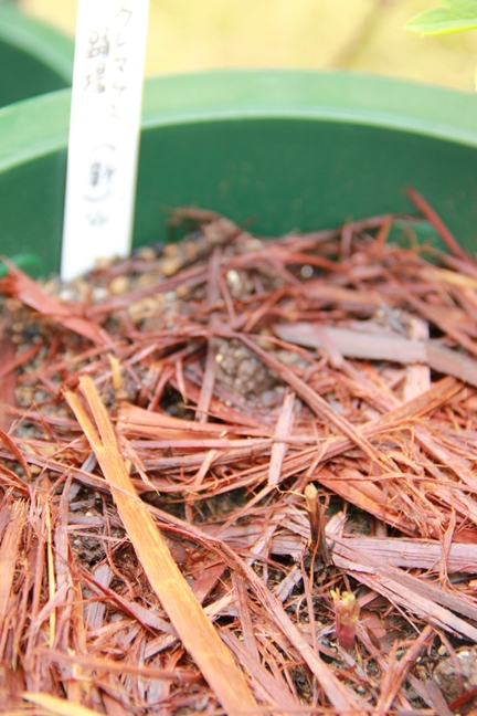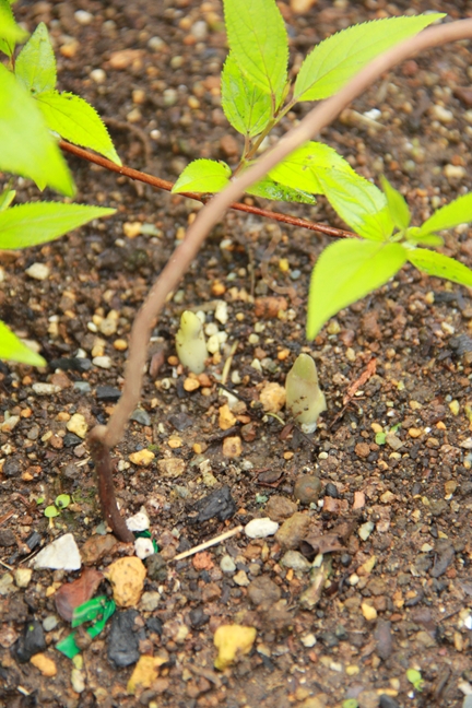 ギボウシのブリムカップ、目印よりちょっとズレたとこに芽が出てた!