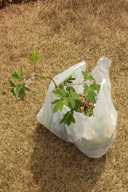 とりあえず板の下になってしまう場所に生えてた植物を掘り出して移動。