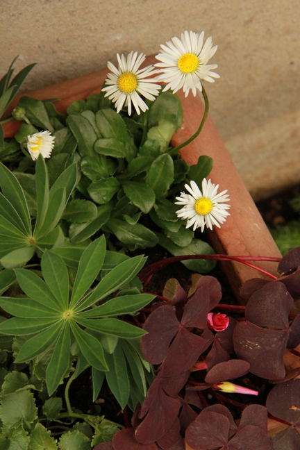寄せ植えも根付いて葉っぱがキリッとしてきた