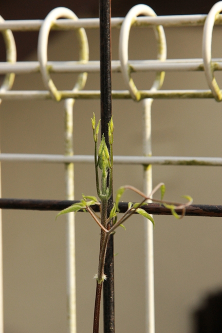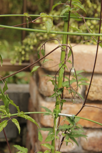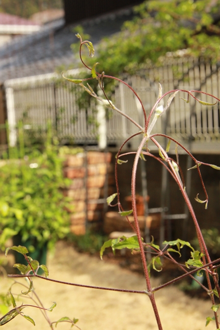 つるデトロイターは、風で葉の落ちたとこの蕾は