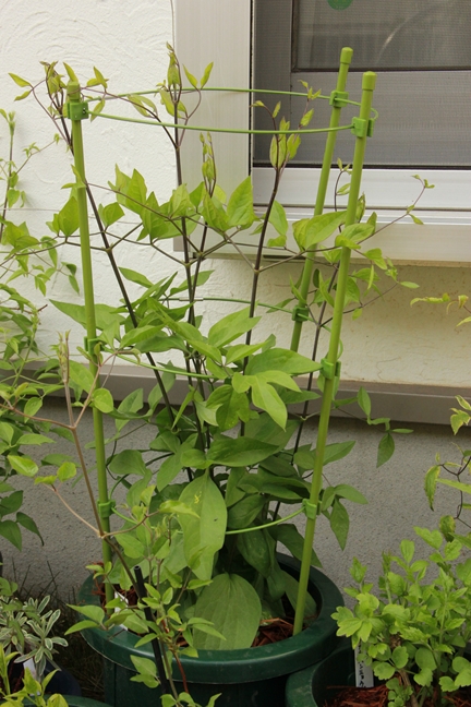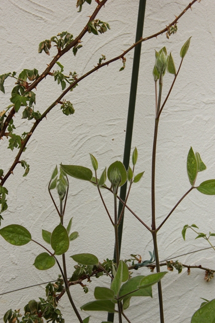 誘引したら、一番長く伸びてた蕾の枝をポキっとやりました…
